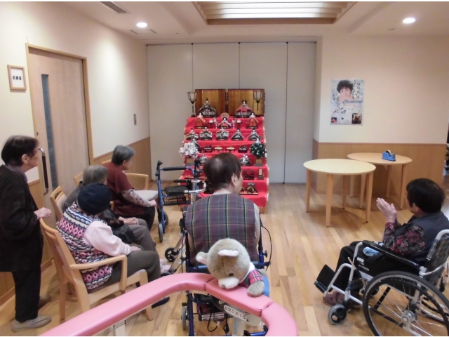 最後はみんなで雛人形を囲み「きれいだね~!立派だね~!」と春の節句をゆっくりと感じていただきました。
