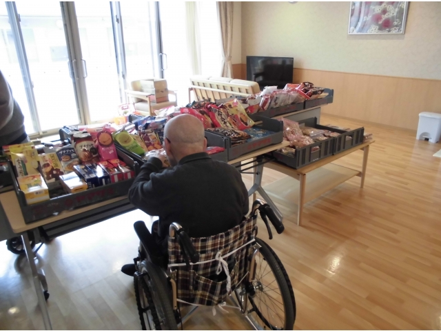 岡崎市内にある業者さんが、ほぼ毎週金曜日にお菓子販売に来苑してくれます。