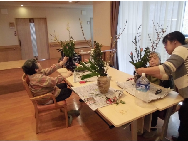 岡崎苑の人気クラブの様子をご紹介(^^♪今回も20名の入居者の方々が「生け花」を楽しまれました。