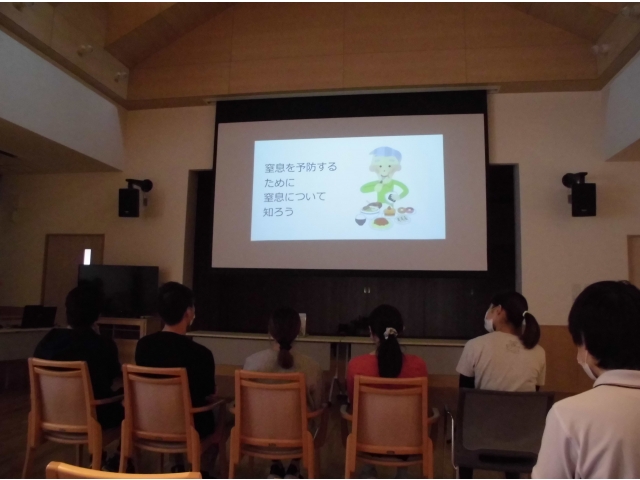 食事による窒息の危険やトロミの濃度などを教えていただきました。