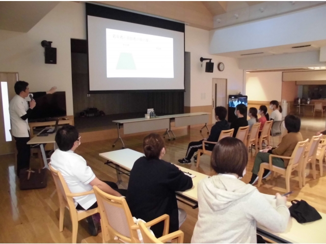 実際の食事を見ていただいた後に言語聴覚士の長尾先生より30分ほどの講義を開いていただきました。