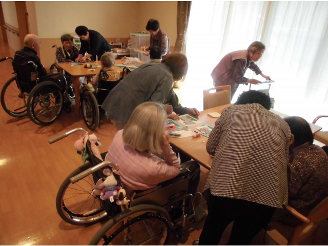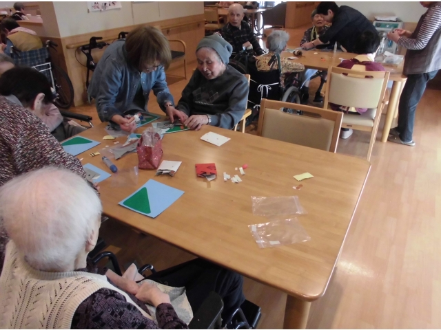 皆さん、にこやかに折り紙を折って、貼って・・と良い時間を過ごせたと思います。ボランティアの皆様、毎回、季節に沿ったものや可愛らしいものを考えてくださりありがとうございます。