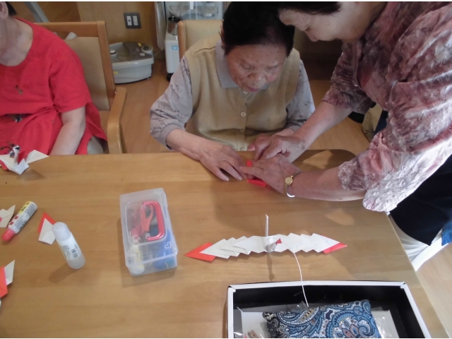 手先を動かすことが難しい方は先生が折ってくれたパーツを