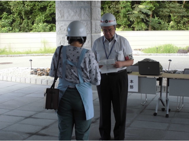 午前6時からの非常呼集訓練に始まり、警戒宣言発令時の情報伝達訓練、安全点検の実施及び報告訓練、火災発生時の消火訓練、避難誘導訓練、負傷者救出訓練を行いました。