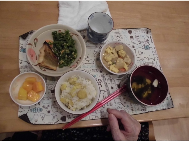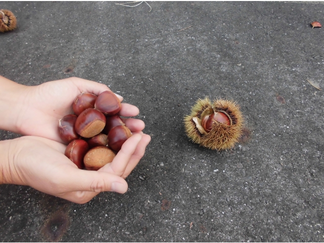 秋の美味しい食べ物と言えば、「さんま」、「きのこ」と並んで「栗」を思い浮かべる方も多いと思いますが、岡崎苑でもびっクリするほどぷっクリした栗が取れました。