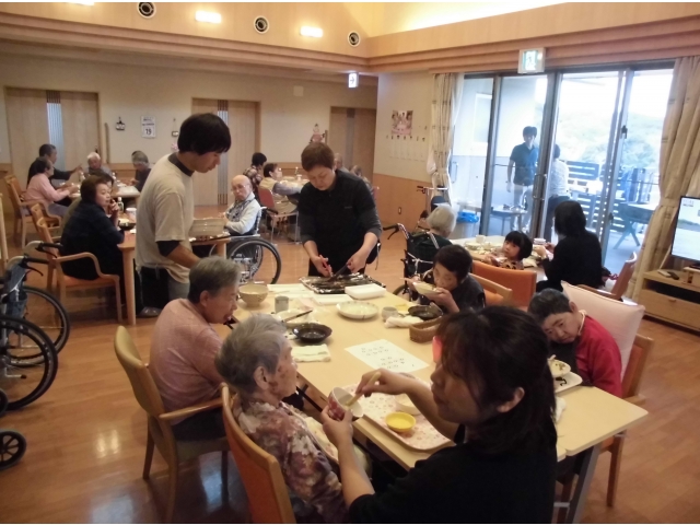入居者様・ご家族様一緒に食事をしていただき、いつもの食堂がより賑やかに(^-^)