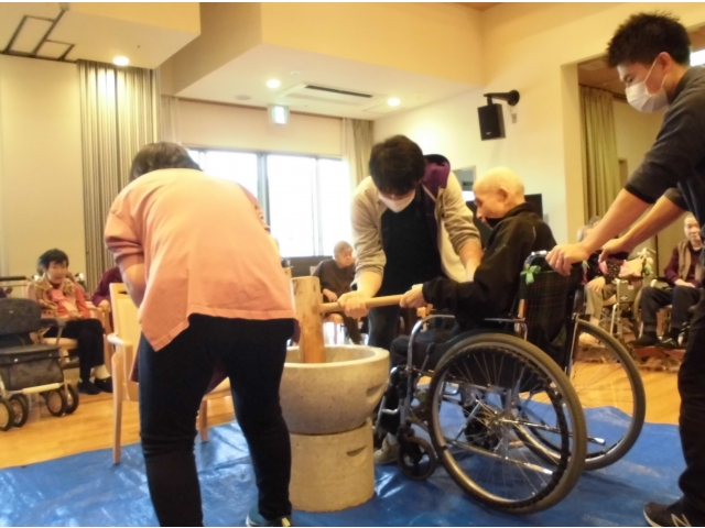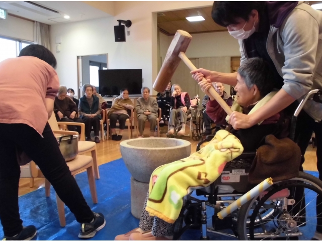 元気に新年を迎えられるよう気合を入れて餅をつきます!