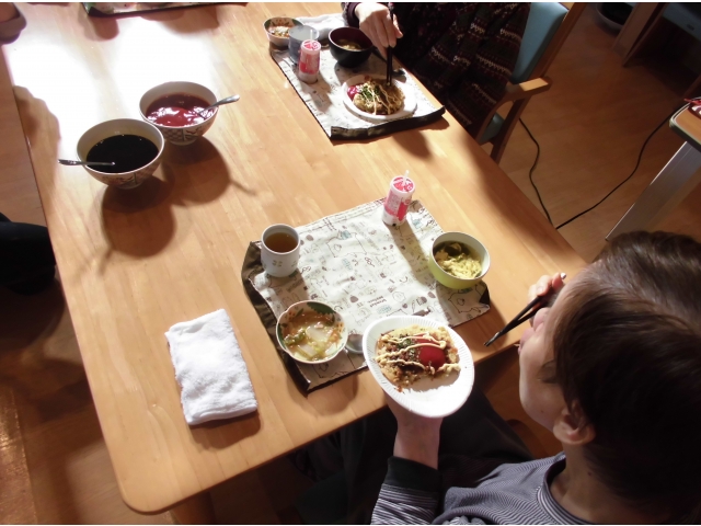 るりではホットプレートでお好み焼きを焼いて食べました。