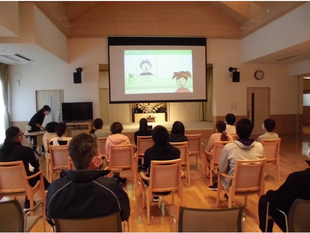 認知症介護指導者の職員が、毎年定期的に認知症介護研修を職場内で行っています。 ・認知症を知る ~ 認知症ってなに? ~ ・認知症の方の心 ~ 認知症になったときの気持ちは? ~ ・認知症になってもできること、認知症の方に対してできることなどを再認識することができました。継続は力なり