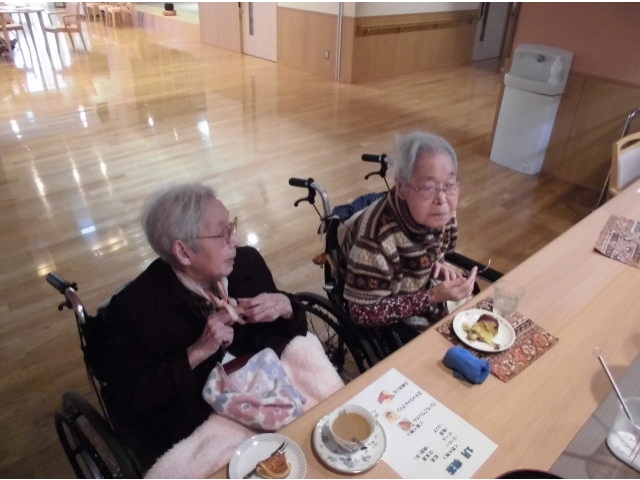 今年も焼き芋の季節となりました。岡崎苑で長年愛用している焼き芋器で作る焼き芋は普通の芋が何ランクもアップし、蜜があふれます。おいしいものを食べてみなさんの笑顔もあふれています。