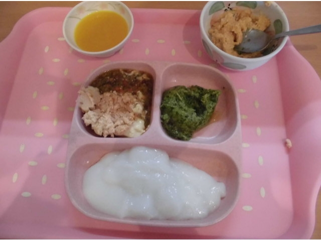 嚥下の悪い方にも味わっていただけるようにピザをミキサーにかけて
