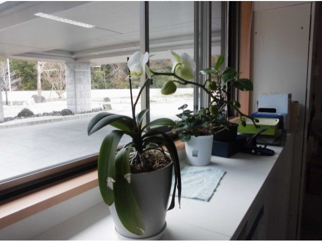 ちなみに、事務所で育てている「蘭(らん)」も、一度は花が落ちて終わりかなと思っていましたが、毎日手当を続けてきましたら、またきれいな花を咲かせてくれました!!