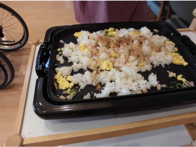 ユニットではホットプレートを使ってご飯を炒めましたよ。