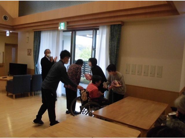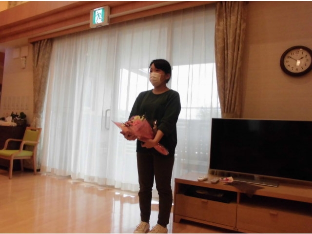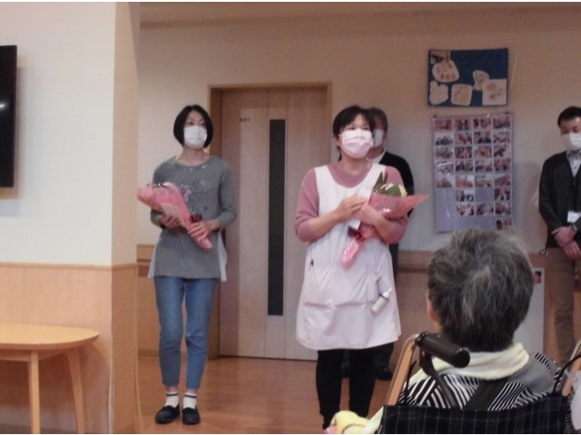 今日をもって岡崎苑を退職・転勤される職員に感謝をこめてお花を