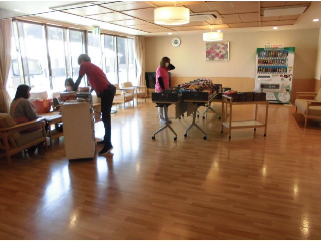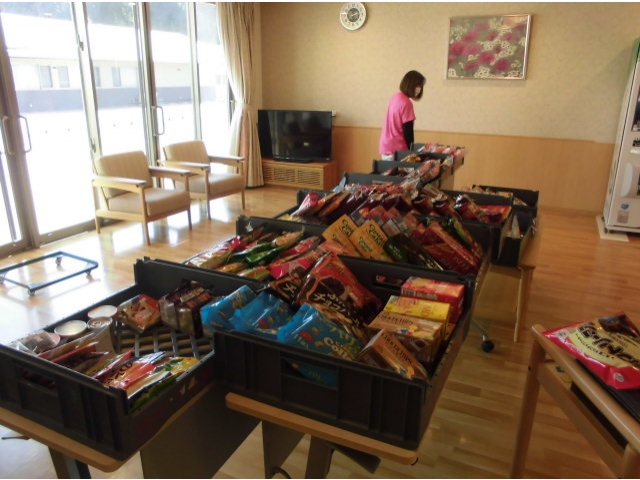 今日はお菓子販売です。いつもなら、お菓子の周りに入居者様がたくさんいて真剣にお菓子を選んでいる光景ですが、職員が黙々と希望のお菓子を選んでいます。支払いの時にはいつもお世話になっている業者さんと何気ない会話をして笑っていますが、今日はしーんとしてます。入居者様にも我慢をお願いしています。少しでもストレスをためないように日々の会話を大切にしています。 愛厚ホーム岡崎苑