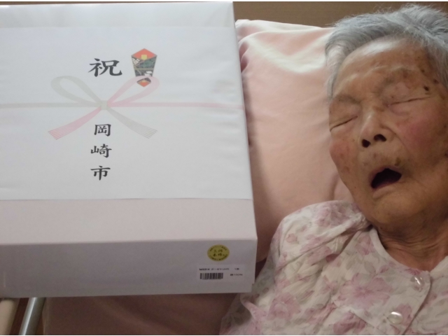 が、100歳以上や白寿の方々には岡崎市よりお祝いの品が届いています。