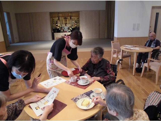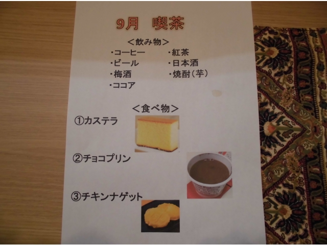 こんにちわ。今月も喫茶クラブ開催しました。今月はカステラが一番人気でした。前回人気だったチキンナゲットはあんまり人気がなかったですね。季節が変われば食べたい物も変わります。来月は何がでますかお楽しみに~ 愛厚ホーム岡崎苑