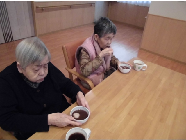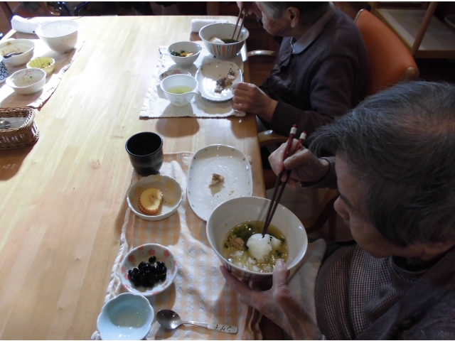 1月8日、ちょっと早い「鏡開き」です。おやつに長芋もち入りのしるこを食べました。