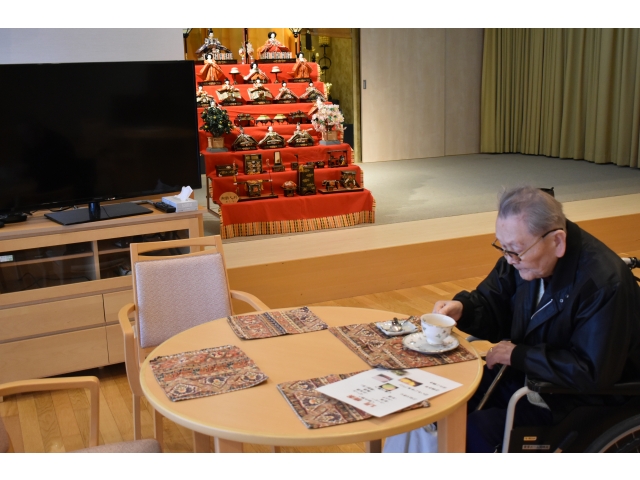 おひな様を見ながらおいしいコーヒー(ビールの人も)とおやつを食べてのんびりと過ごしてもらいました!