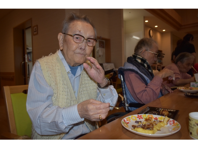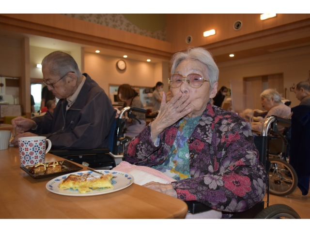 みんな「おいしい」と言っていました。ペロリと食べてしまって、おかわりする方もいました。お腹一杯 ですね。 愛厚ホーム岡崎苑