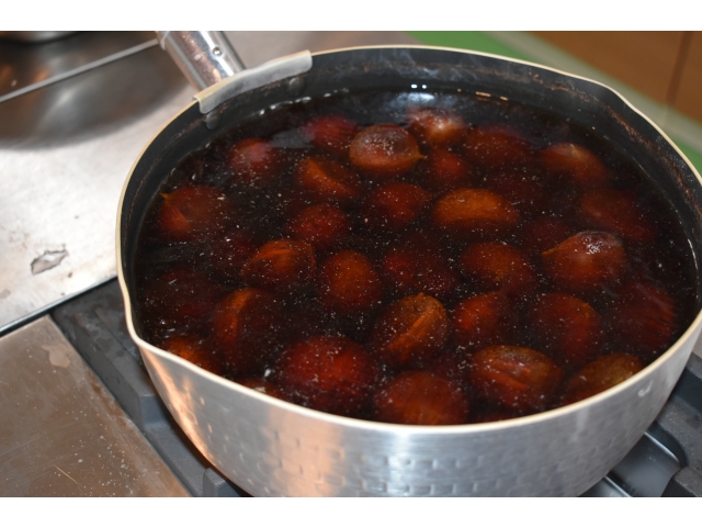 先日、拾った栗で『栗きんとん』を作って喫茶クラブのメニューで出しました。ウエイトレスさん達がオススメしてくれたのでたくさんの注文を頂きました。
