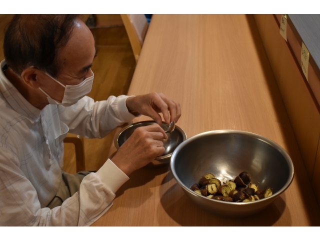 職員で『栗きんとん』作りですみんなで頑張りました。