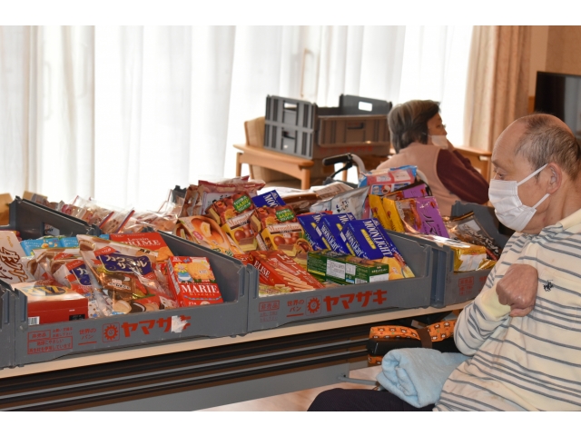 岡崎苑では週に1回 菓子販売を実施していますティータイムに食べるお菓子を購入します