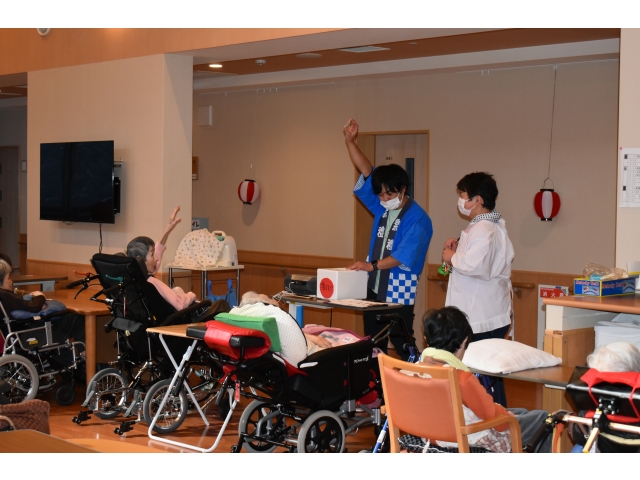 各フロア・ユニットでカラオケ、お菓子釣り、くじ引きなどを楽しみました