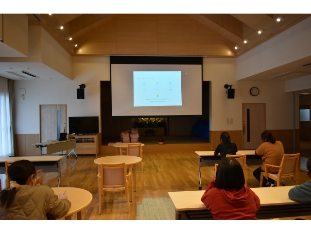 ポジショニングについての講義や具体的に写真を見ながらクッションをどのように使用すればいいか説明がありました。