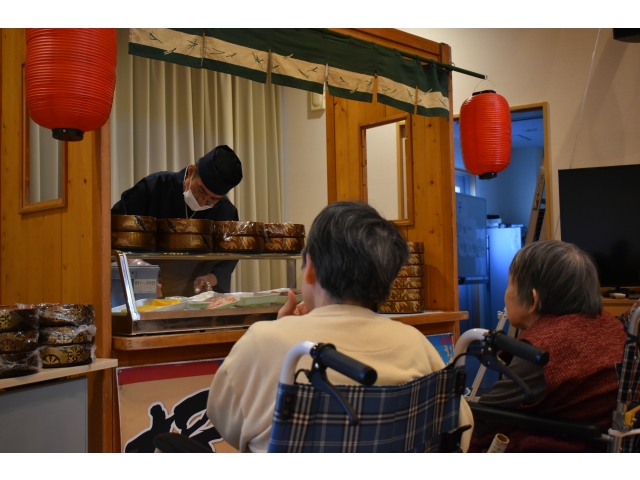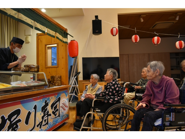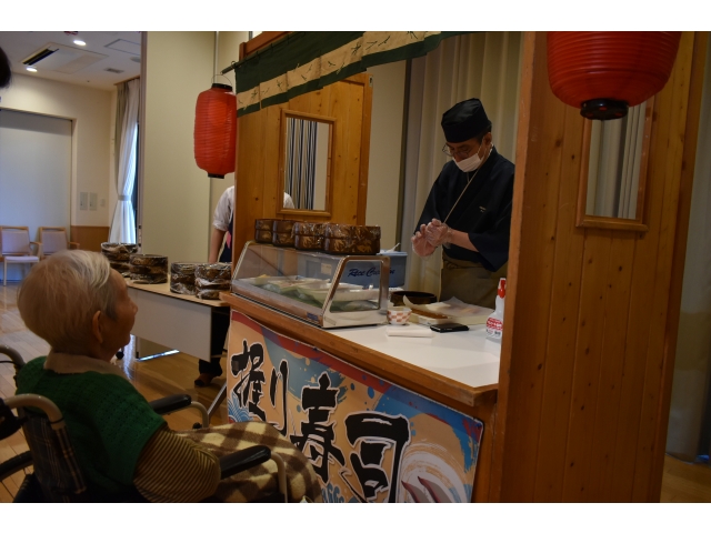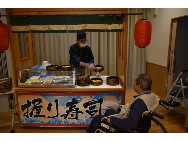 11月18日は寿司の屋台が来ました。午後からは各ユニット・フロアでレクリエーションがありました。