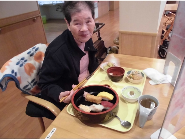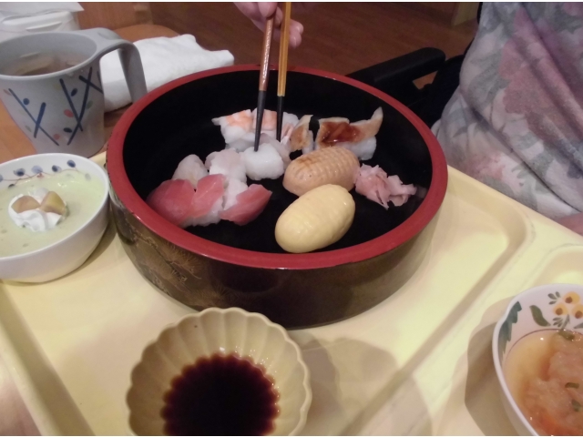 お寿司はみんな大好きなのでうれしそうでした。おいしくいただきました。