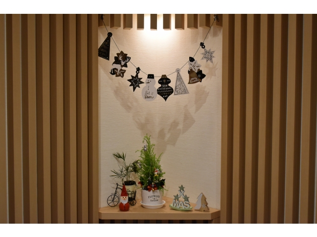 クリスマスの飾りつけが華やかでいいですね。ユニットやフロアで工夫してかわいく飾り付けてありました。