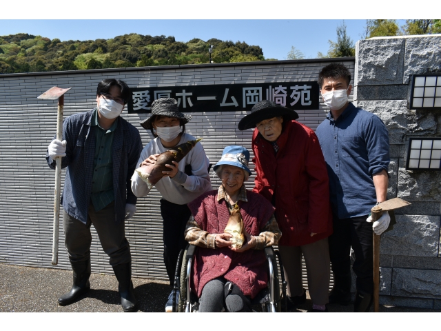 一緒に行ったご利用者は「たけのこ掘るの初めて見る。おっきいね。」とずっと笑顔でお話してくれました。職員は汗だくで頑張って掘りました。翌日の夕食にたけのこご飯にしていただきました。春の味覚ですね。おいしかったですか。