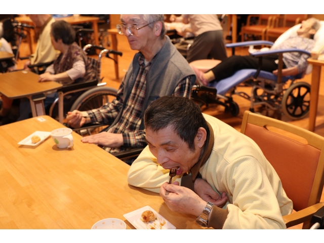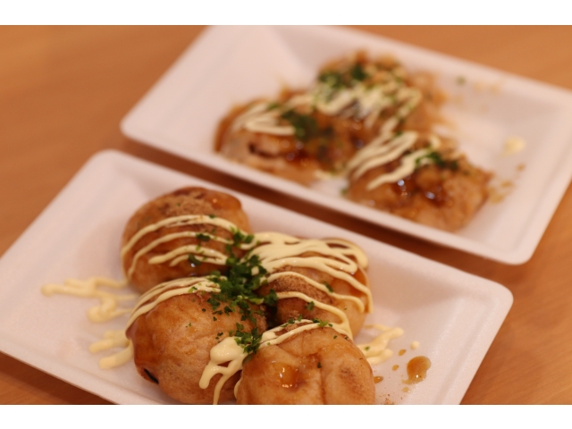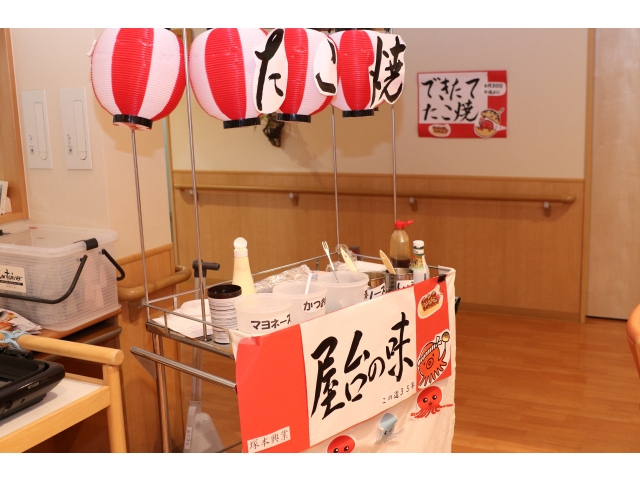 午前中から準備をしておやつの時間に食べてもらいました。たこ焼き屋台(手作り)でソース味か醤油味か選んでもらい、みんなおいしいとペロッと食べてしまいおかわりもありました。