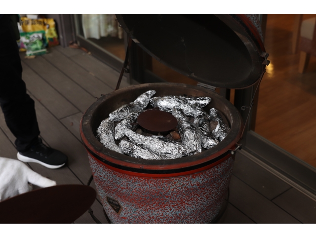 - 焼き壺に芋投入!!