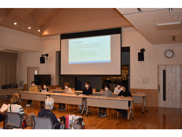 当日は苑長より「私たちの誓い」に始まり、施設での取り組みをご報告しました。その後は質疑応答の時間を設け、ご家族様からのご意見やご質問にお答えしました。