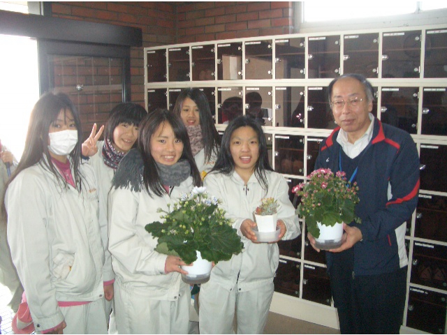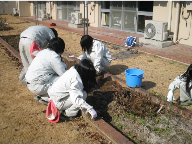 2月10日(月)に佐屋高校の3年生の奉仕活動として、花壇整備を先生1名、生徒7名が来苑され、花壇の整備を行って頂きました。