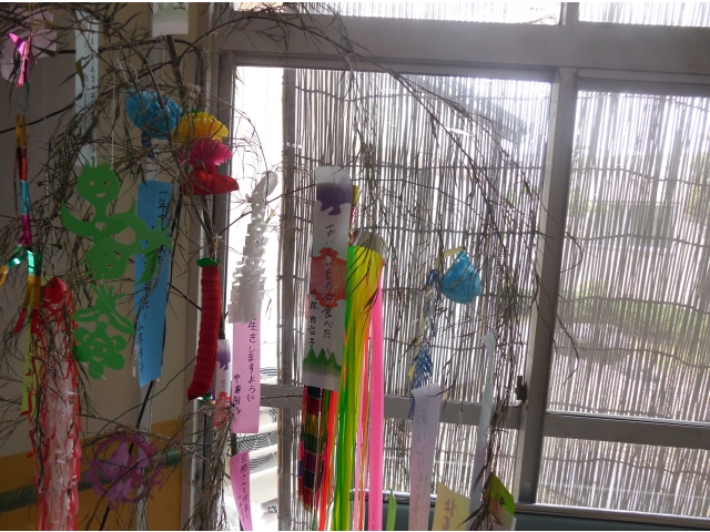 また、苑内にはカラフルな吹き流しを吊るしたり、利用者の皆さまの願いがこもった短冊を笹に飾りつけ、賑やかな雰囲気に皆さま喜ばれておりました。