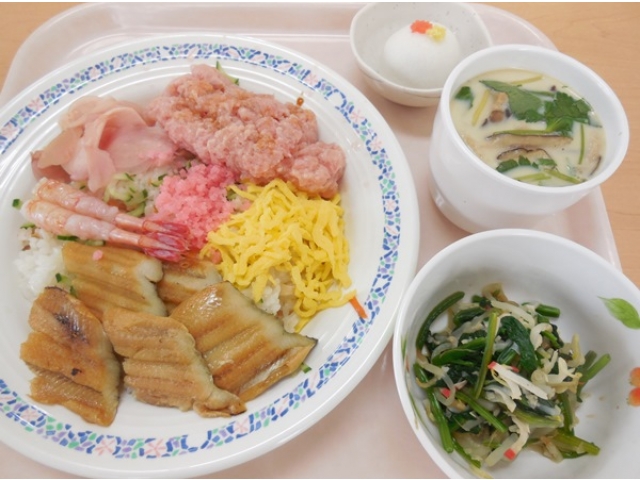 利用者様より「ちらし寿司食べたかったよ」、「ちらし寿司、久しぶりだね」と言う声が聞こえました。