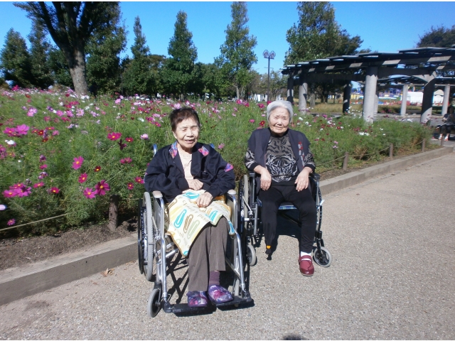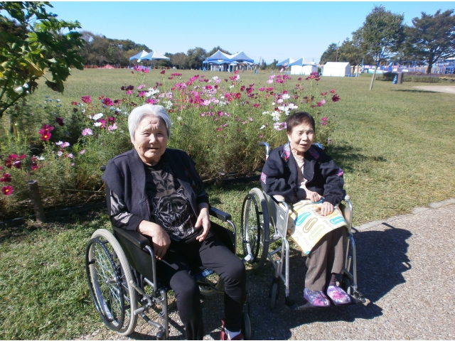 10月4日(水)、苑外外出で木曽三川公園へ出かけました。 苑外外出は月2回あります。気候のよい時期はお花見へ、洋服や何か欲しいものがあれば買い物へ出かけます。今回は満開のコスモスを観てきました。アイスクリームもおいしかったです。