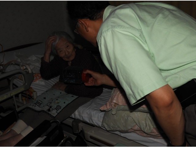 各居室を順番に回り、8匹のホタルを利用者のみなさまに見せていただきました。