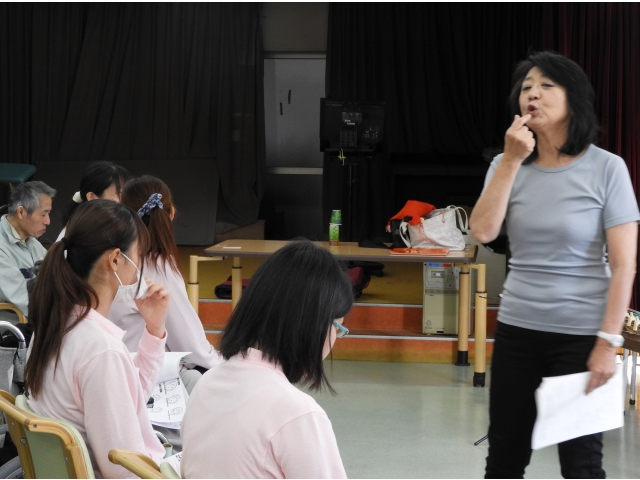 平成30年10月31日に、愛知県歯科医師会在宅歯科医療連携室 歯科衛生士 河原千里氏をお招きし、「お口の健康と介護予防 ~アンチエイジング!老化は予防できる!!~」をテーマに、職場研修を開催しました。