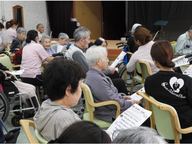 今日は、講師の奏でるお琴の音色に併せ、同様から昭和の名曲「北国の春」や「愛染かつら」まで元気に歌って楽しいひと時が過ごせました。