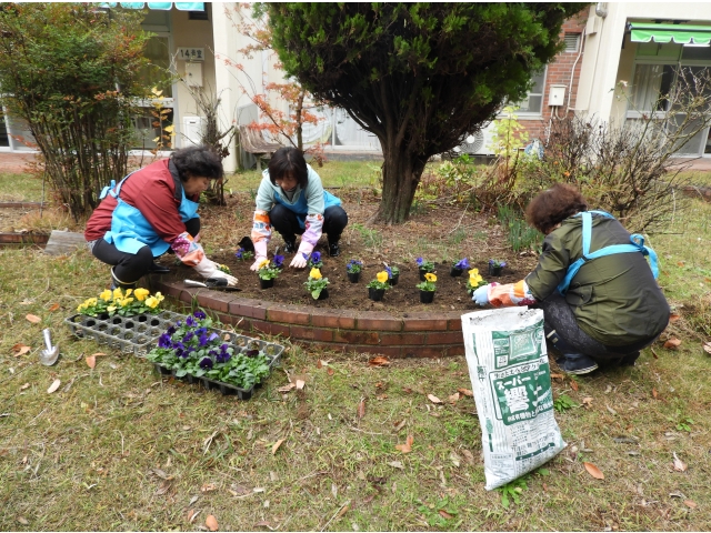 平成30年12月3日(月)、愛西市婦人会の皆様が、パンジーの苗木を植えて下さいました。冬になり、物寂しい雰囲気が漂っていた佐屋苑の花壇ですが、パンジーのおかげで彩りを取り戻しました。これからぐんぐん育つのを楽しみにしています。愛西市婦人会の皆様、雨天の中ありがとうございました!