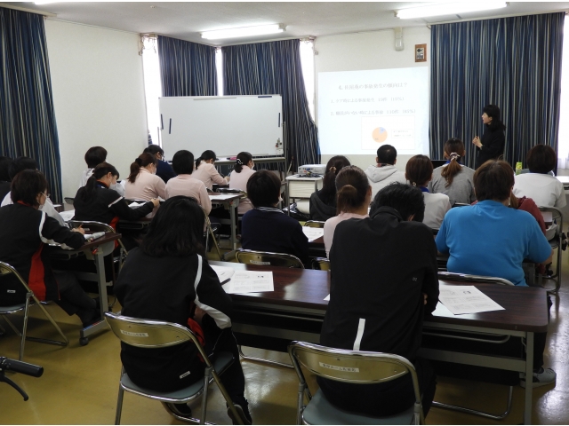 平成31年2月20日に、日本福祉大学中央福祉専門学校 専任教員 森由香子氏をお招きし、「事故防止研修2 ~介護現場でのインシデント介護事故について~」をテーマに、職場研修を開催しました。