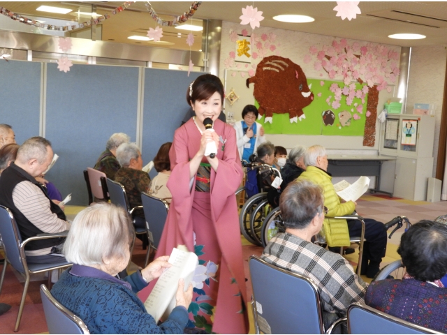 4月4日(木)に、お隣の佐屋デイサービスセンターさんからお招きいただき、渕上雅代歌謡ショーへ出掛けてきました。懐かしい歌を一緒に口ずさみ、大盛り上がりの中で楽しい時間を過ごしました!