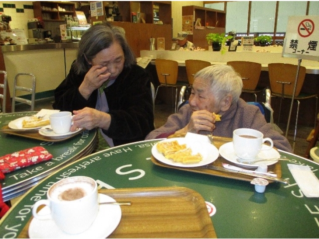 4月10日(水)に、利用者2名、職員2名でヨシヅヤ津島本店へお出かけをしました。まず、衣類やお菓子を購入し、その後、喫茶店に場所を移し、コーヒーとパンケーキを食べながら楽しいひと時を過ごしました。佐屋苑の喫茶とはまた一味違った雰囲気で、大変幸せな空間でした。