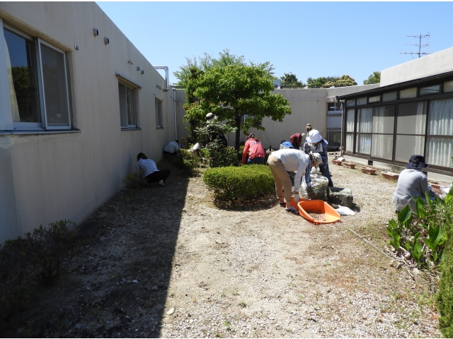 5月23日(木)、佐屋中学校PTAの皆様14名が、佐屋苑の除草作業にお越し下さいました。 当日は、朝から気温が上がり、暑い日でありましたが、苑内美化にご協力していただき、とても感謝しております。また、お花の寄せ植えもいただき、早速飾らせていただきました。利用者・ご家族もお花を見て喜んでおられました。 佐屋中学校のPTAの皆様、今日は本当にありがとうございました。