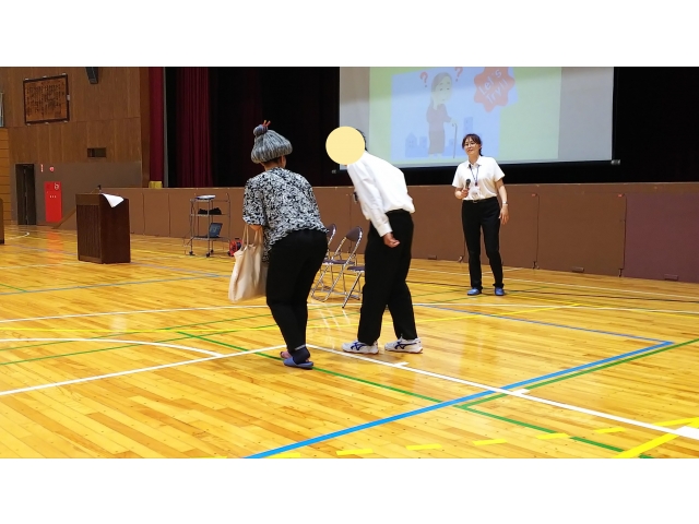 生徒さんにも認知症高齢者の接し方を体験してもらいながら、認知症の予防方法、認知症の特徴について1時間講習を受けました。寸劇の中のおばあさんが左右違うスリッパを履いていることにも、みんな気付いていました。すごい観察力!