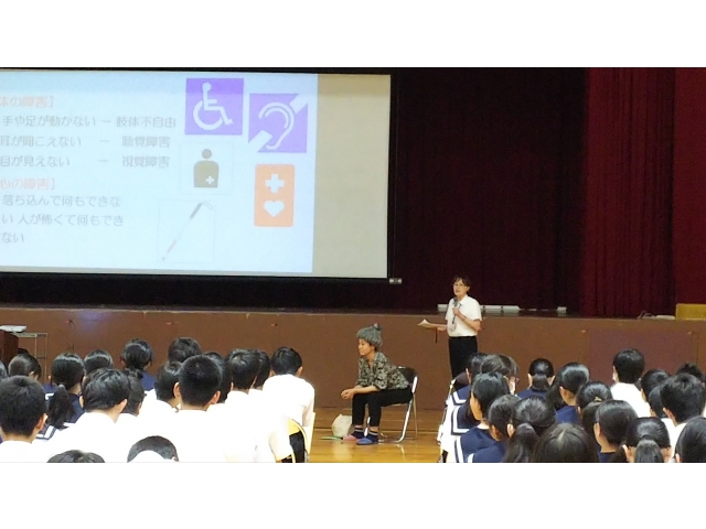 6月7日(金)、福祉実践教室の一環として佐屋苑地域包括支援センター職員が佐屋中学校にお邪魔して 「認知症サポーター養成講座」~だれかの大切なおじいさん、おばあさん~を、2年生188名にお伝えしてきました。